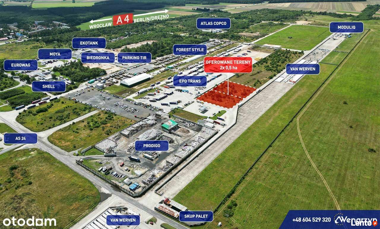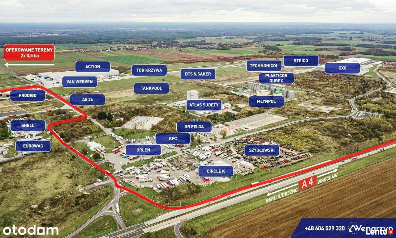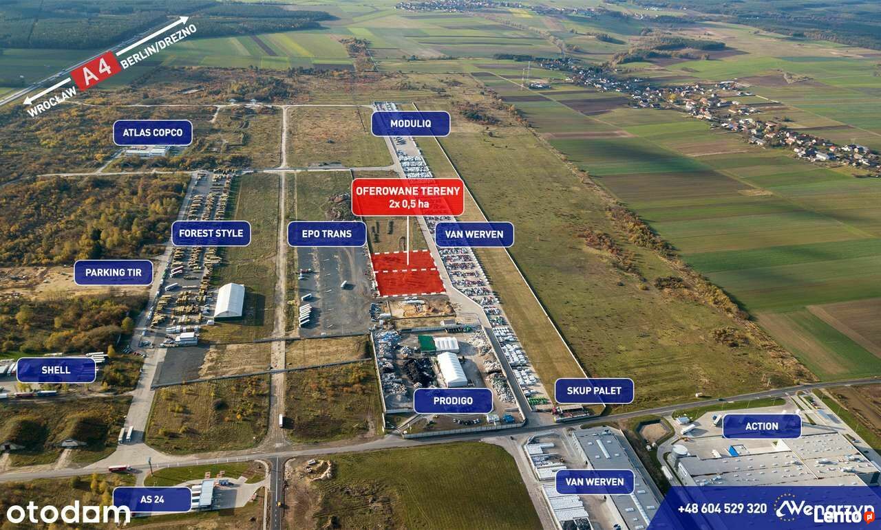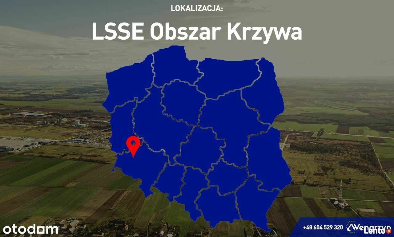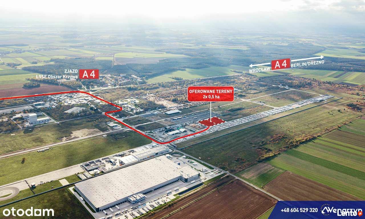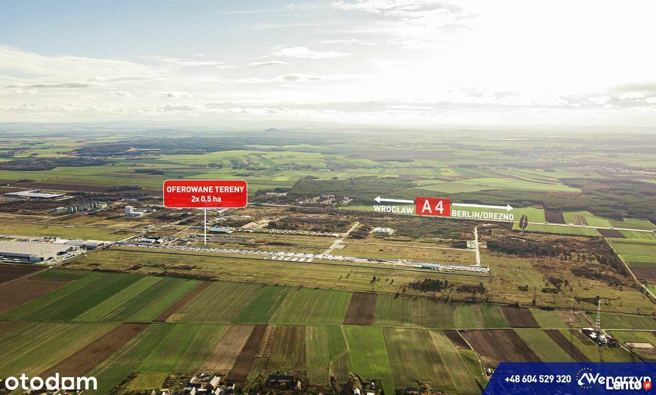 Atrakcyjna 0,5 ha tj. 5.197 m2 działka, powstała w wyniku podziału działki nr 376 obręb Różyniec, o powierzchni 10.394 m2 tj.1,04 ha w kształcie prostokąta na 2 działki.Działka ta znajdują się tuż przy autostradzie A4, 800 m od zjazdu "LSSE Obszar Krzywa, Szczytnica" (3 km od skrzyżowaniu autostrad A4 z A18) Głównym atutem jest idealny dojazd do działki z autostrady, nowo wybudowaną drogą asfaltową, oświetloną. Możliwe są dwa wjazdy na oferowany teren bezpośrednio z dróg betonowych. Odległość od granicy niemieckiej wynosi 60 km, odległość od Wrocławia 90 km, od Legnicy 30 km, od Bolesławca 15 km.